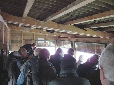 The Tower Hide, featuring Bun, Roger and Brett (on stairs). Notice the guy on the left admiring his distant brown blob photos, well if they were anything like mine that is :-)